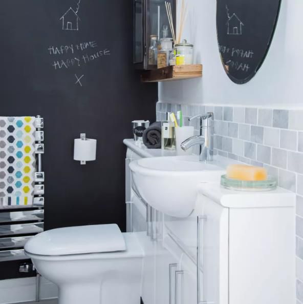 黑板漆讓您可以隨時改變前景。作為樓下廁所的想法,它創(chuàng)造了一個機會,可以為客人寫歡迎信息或在使用房間時思考令人難忘的名言。為如廁訓練增添趣味元素是一個好主意或家庭浴室。