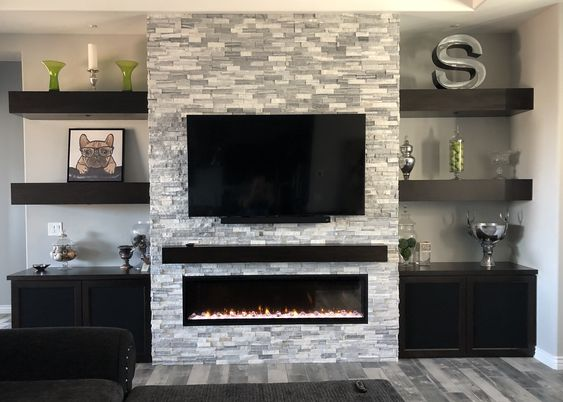 POP 設計可以以多種創造性方式使用,使電視機成為裝飾的一部分。液晶電視墻單元的這種POP 設計是用石頭 POP 口音墻創建的。架子都是深色的,看起來很時尚。我們喜歡使用壁爐壁紙為電視單元墻創造更舒適的外觀。
