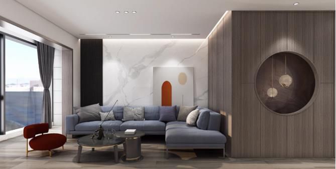 儲物餐邊柜,木飾面加大規格巖板背景,實現裝修內容主次分明,有詳有簡。