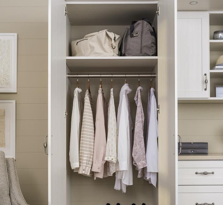 在大多數衣柜壁櫥中,都需要有掛衣服的空間。大多數人從未想到的是,衣架上的衣服從墻上伸出 20-21 寸。出于這個原因,內置衣柜需要一些 24 寸深的部分,這樣櫥柜門就不會砸碎你的衣服。