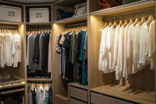 首先按類型整理衣服,然后按顏色整理衣服,這可能是為不同場合搭配服裝的更有效方式。例如,連帽衫和運動衫可以緊緊地掛在一起,更好的襯衫或襯衫可以在另一個部分工作。