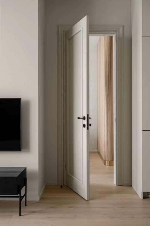 極致簡約的造型,高度的色彩凝練,將木門作為空間設(shè)計的入口,讓木門、墻板、家具飾面效果一體化,是家居空間的點睛之筆。