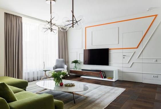 電視架與白色大理石相結合,帶來真正的斯堪的納維亞客廳。客廳電視架的設計之一是很多房主的選擇。